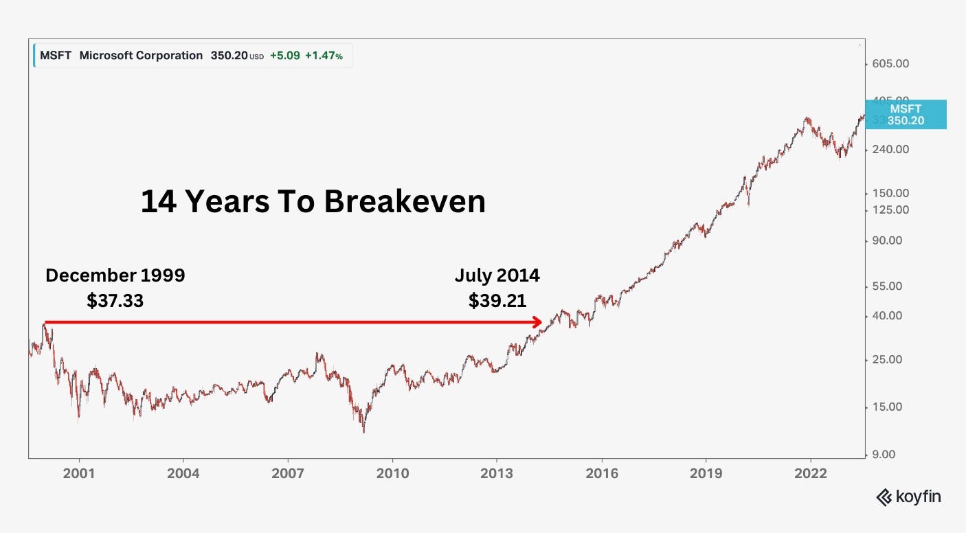 Expect a few difficult quarters, with many companies winding down. The best companies will be okay—though it may take years for them to grow back into their valuations. It took Microsoft 14 years (!) to break even after its frothy dotcom-era valuation.