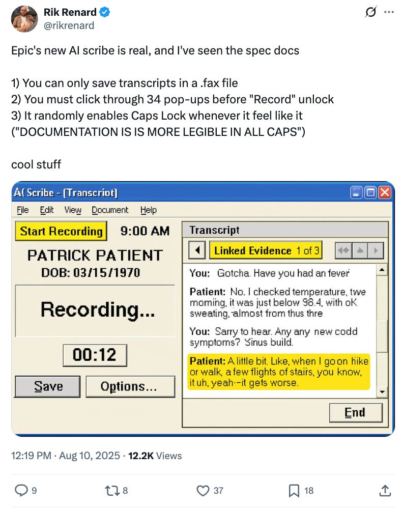 I saw the below tweet last week about Epic launching a medical scribe. I thought it was satire. Epic does over $5B in revenue, employs 14,000 people, and touches 305M patients with its platform. Yet this is what it comes up with?