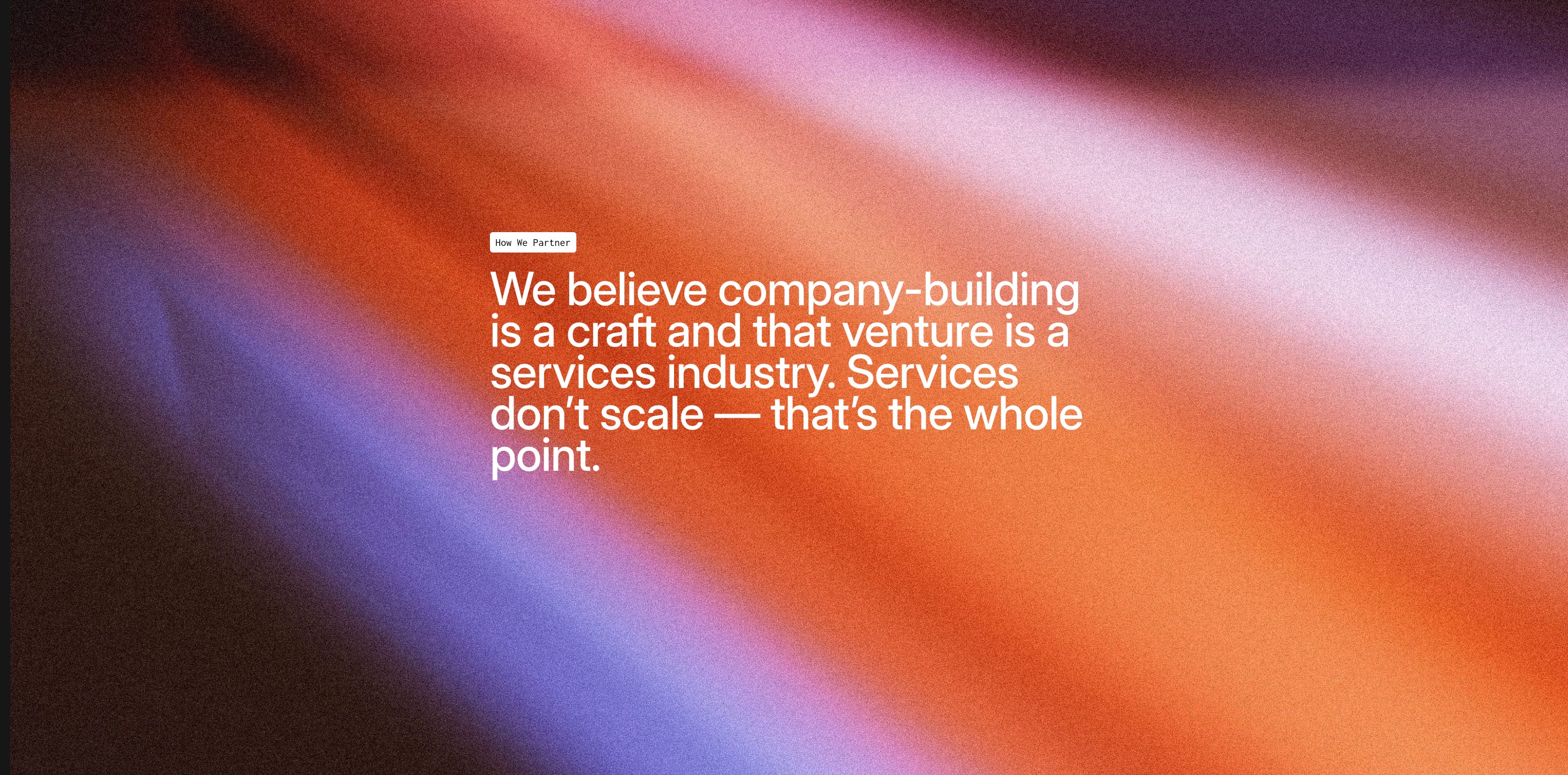 We believe that venture is a services industry, and services don’t scale. Some firms position themselves as engines of scale, while we position ourselves as the opposite. We do things that don’t scale, intentionally: we give our founders tailored resources and attention toward finding product/market fit and getting their company off the ground. This is why founders choose us.