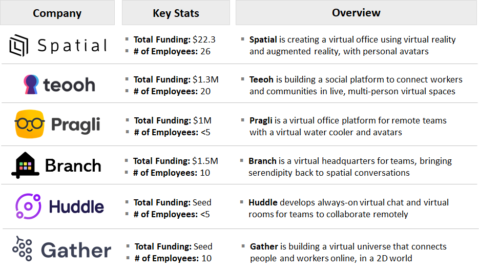 These companies are a precursor to what’s to come. As teams become more global and distributed—and as Zoom fatigue gets worse—companies will turn to more creative and expressive ways to interact virtually.