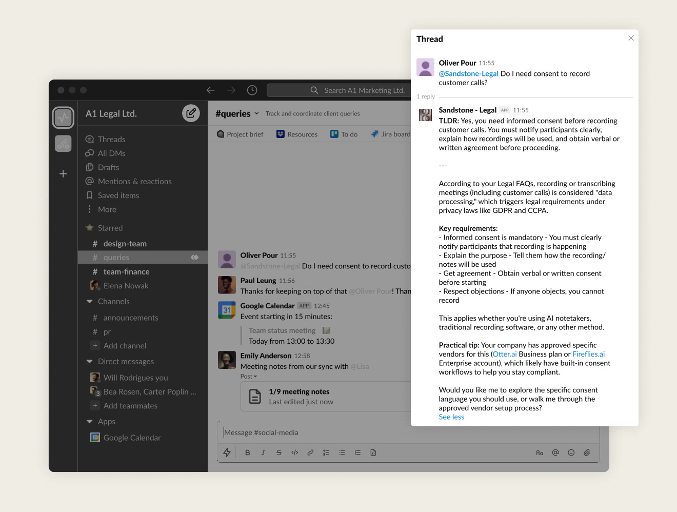 10:30AM — Marketing asks: “Can we say ‘heart-healthy’ on the new packaging?” No context. Sarah asks which SKU. They take two hours to respond.