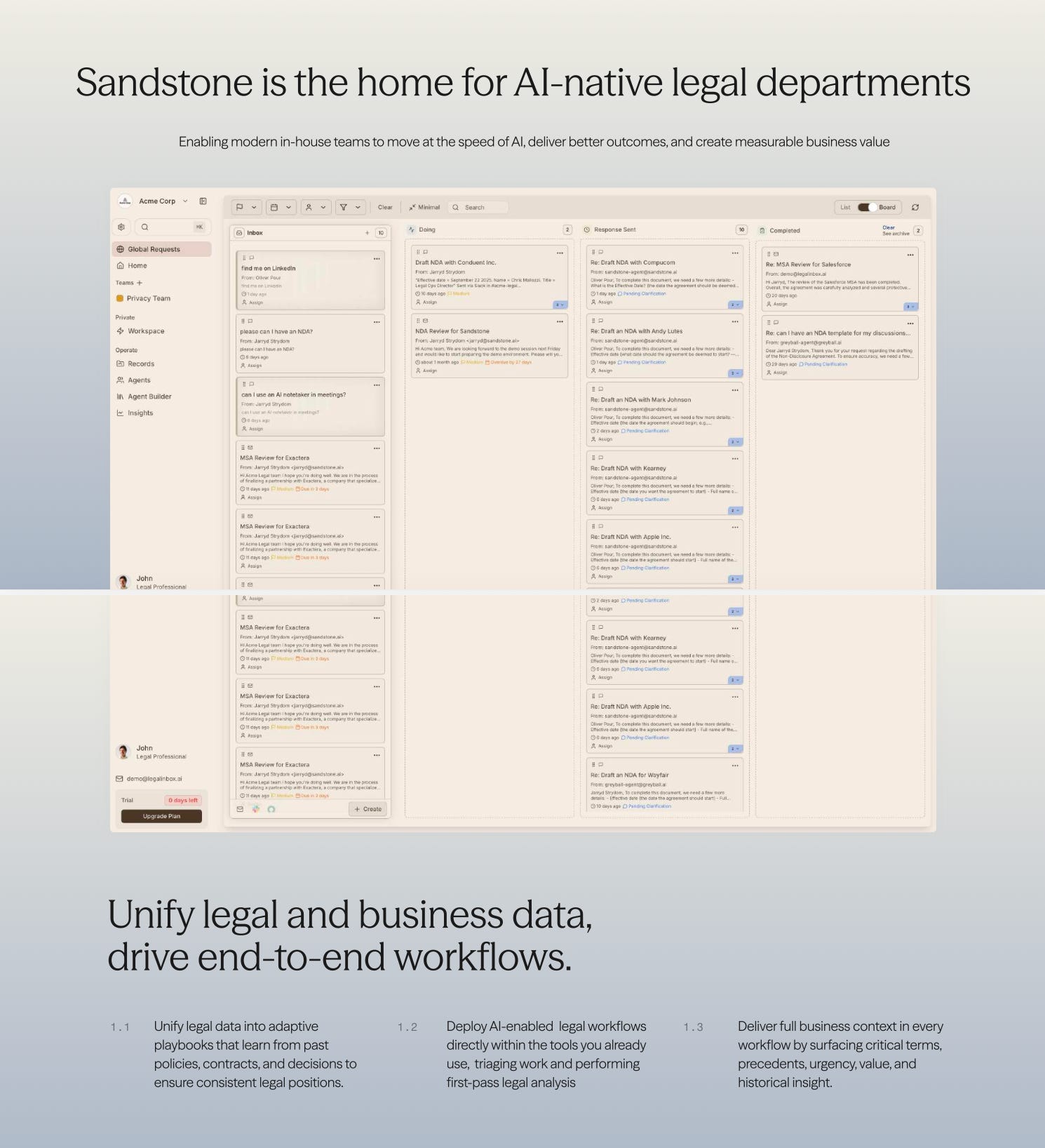 Sandstone’s insight is to meet in-house teams where they are, becoming the central nervous system that unifies data and injects AI into tools people are already using.